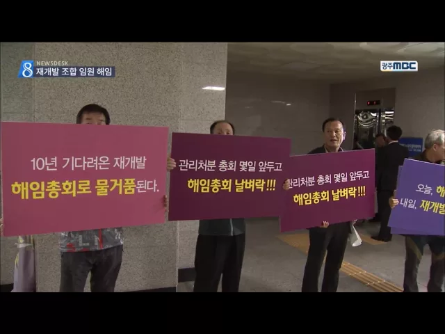 (앵커) 광주 계림동 재개발 사업 현장에서 잡음이 끊이지 않고 있습니다. 계림 4구역에서는 비상대책위원회가 현 조합의 임원들을 해임하면서 재개발 사업은 안개 속으로 빠져들었습니다 정용욱 기자입니다 (기자) 광주 계림 4구역 재개발 조합 임원들의 해임 여부를 묻는 주민 총회입니다 투표 결과 조합장과 이사, 감사 ...