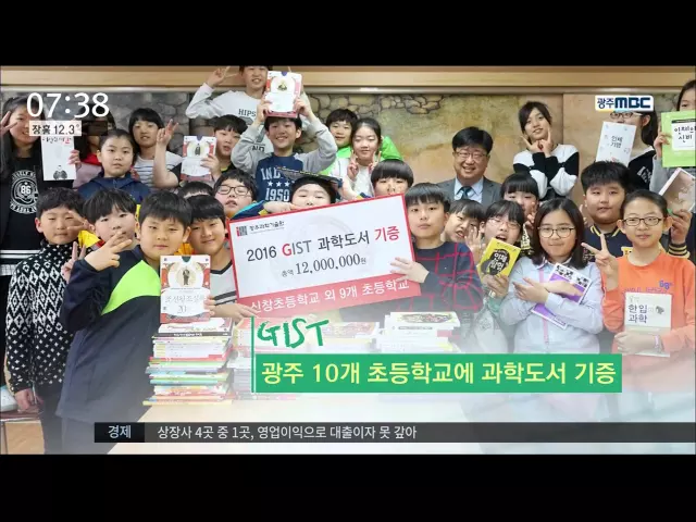 광주과학기술원이 제49회 과학의 날을 맞아 신창초등학교 등 10개의 초등학교에 과학분야 도서를 기증했습니다. (21) 광주도시공사 등 4개의 기관이 여성과 문화가 어우러지는 도시를 만들기 위해 업무협약을 맺었습니다. (21) 남부대학교에서 도전하는 인생, 성공의 키워드를 주제로 김영환 광주전남중소기업청장의 초청강...
