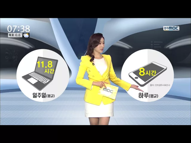 하루에 컴퓨터와 스마트 기기, 얼마나 이용하시나요? 지난해 광주시민을 대상으로 조사한 결과, 컴퓨터는 일주일동안 평균 12시간을 이용했고요. 스마트폰이나 태블릿 같은 스마트 기기는 하루에 평균 8시간을 이용했습니다. 오랜 시간 이용하는 컴퓨터와 스마트 기기. 어떤 자세로 이용하고 계신가요? 이렇게 잘못된 자세...