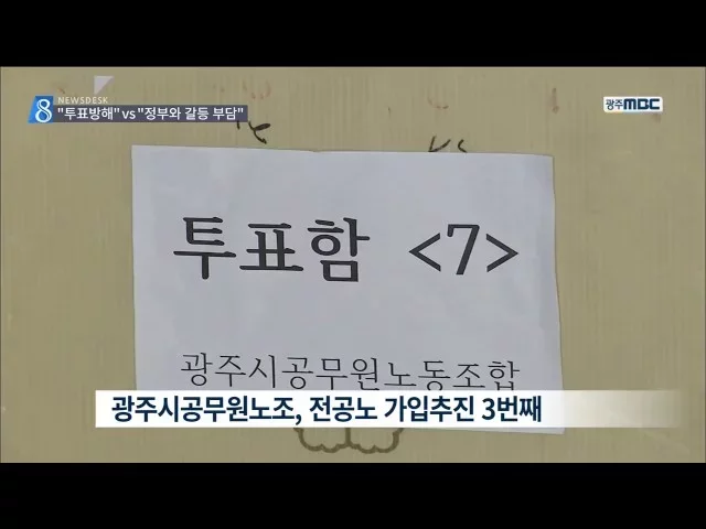 (앵커) 전공노 가입 투표를 둘러싸고 광주시와 시공무원노조의 갈등이 심화되고 있습니다. 어떤 속사정이 있는 지 김인정 기자가 취재했습니다. (기자) 점심시간을 맞은 광주시청. 음식 배달이 줄을 잇습니다. 간부공무원들이 부서원들의 음식을 사무실로 배달시키는 겁니다. (인터뷰) 광주시 모 간부공무원/(음성변조) "제...