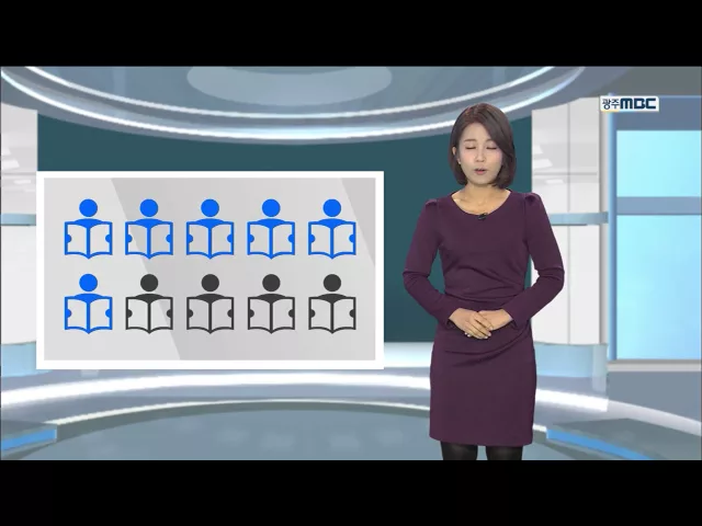 (브릿지 포함 완제품) 9.1, 이 숫자가 의미하는 게 뭘까요? 지난 한 해, 우리 국민의 평균 독서량입니다. 그런데 광주는 성인의 연평균 독서량이 8권으로 전국 평균에 못 미쳤습니다. 전남은 5권으로 아쉽게도 전국 꼴지였습니다 그렇다면 광주전남에서 1년 동안 책 한 권이라도 읽는 성인은 몇 명이나 될 까요? 광주의 경...