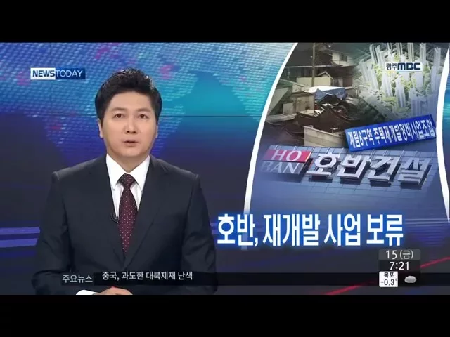 (앵커) 재개발이 추진되고 있는 광주 계림 8구역에는 수영대회 선수촌이 건설되고 있습니다. 그런데 시공사인 호반건설이 갑자기 사업 진행을 뒤로 미뤄서 광주시가 선수촌 건설 일정에 차질을 빚지 않을까 우려하고 있습니다. 정용욱 기자입니다 (기자) 호반건설이 광주 계림 8구역 재개발 조합에 보낸 사업진행 보류 공문...