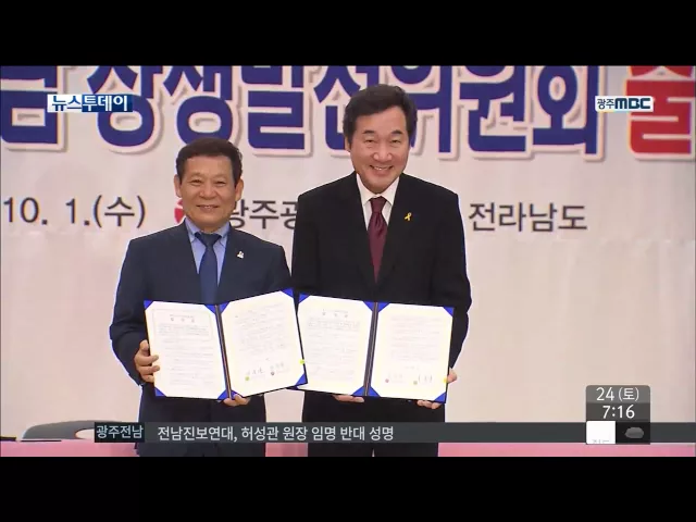광주 전남의 상생 협력을 위해 만든 상생발전위원회가 오늘 회의를 열고, 그동안의 추진 상황을 점검했습니다. 이 자리에서 윤장현 광주시장과 이낙연 전남지사는 광주 전남의 상생은 필연이자 외길이라고 강조했고, 어떤 어려움도 피하지 않겠다고 말했습니다. 오늘 회의에서는 귀농인을 위한 영농 교육장 설치와 서울에 ...