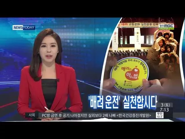 (앵커) 서로 서로 배려하는 교통 문화를 통해 사고를 줄이자는 캠페인이 광주에서 시작됐습니다. 정용욱 기자입니다. (기자) 광주 예술고 학생들이 만든 '배려하는 교통문화' 동영상입니다. 남을 먼저 생각하는 운전이 선진 교통문화를 만든다는 내용입니다. ◀SYN▶ 5-6초 문화수도 광주에 걸맞지 않게 교통사고율 전국 1...
