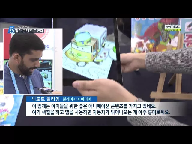 (앵커) 3D 스캐닝과 드론 등 최첨단 기술을 활용한 문화 콘텐츠를 사고 파는 시장이 광주에서 열렸습니다. 해외 바이어들의 관심이 뜨거웠다고 합니다. 김인정 기자가 취재했습니다. (기자) 화면 앞으로 걸어들어가자 갑옷 입은 무사로 변신하고, 공룡 그림에 태블릿 PC를 가져다대니 알을 깨고 튀어나옵니다. 현실 세계에 ...