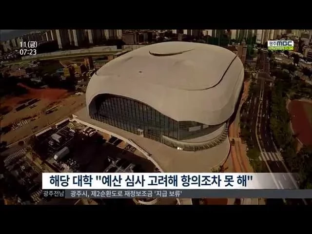 (앵커) 대학에 지은 U대회 경기장에는 이름이 붙어 있는데 광주시의회가 1년도 안돼 이 이름을 바꾸겠다며 조례안을 통과시켰습니다. 시민 공모로 결정한 이름을 왜 갑자기 바꾸냐는 볼멘 소리가 나오고 있습니다. 이계상 기자입니다. (기자) 대학안에 건립돼있는 U대회 체육시설의 명칭을 변경하는 조례안이 통과됐습니다....