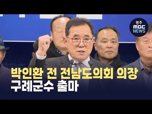 박인환 전 전남도의회 의장이 오늘(4) 전남도의회에서 기자회견을 하고오는 6.3지방선거 구례군수 출마를 선언했습니다.박인환 출마예정자는 "전남·광주 통합특별시시대는 구례의 미래를 다시 설계할 결정적 기회"라며 "지리산과 섬진강 등 전국 최고 생태·문화자원을 보유한 구례는 통합특별시 체제에서 문화·관광 정책의 ...