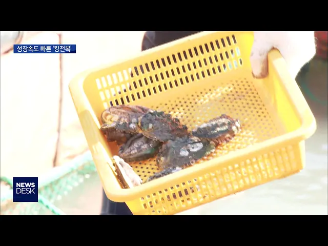 ◀ANC▶ 전복은 성장속도가 느린 편으로, 자라는 데 보통 3년 가까이 걸립니다. 그런데, 일반 전복보다 성장속도가 훨씬 빠른 이른바 '킹전복'이 개발돼 양식 현장에 보급되고 있습니다. 김양훈 기자가 취재했습니다. ◀END▶ 전남 해남 어불도 해상의 전복 양식장 바닷 속 그물을 올리자 전복이 가득합니다. 국내 참전복...