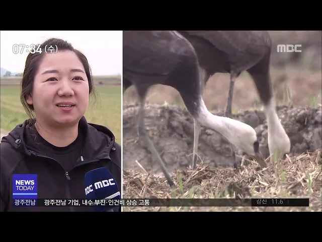 ◀ANC▶ 천연기념물 제228호 흑두루미는 순천만에서 월동하는 대표적인 겨울 철새입니다 흑두루미는 보통 3월이면 시베리아로 떠나는데, 올해는 일부 가족무리가 5월이 시작되는데도 순천만에 머물고 있습니다. 어찌된 일인지 박민주 기자가 취재했습니다. ◀END▶ 전남 순천만. 봄 경작을 앞둔 농경지 한 가운데 철새들...