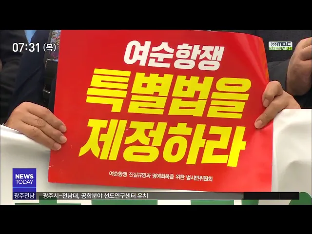 ◀ANC▶ 서울과 수도권, 제주지역 시민단체들이 여순사건 진실규명과 특별법 제정에 힘을 모으기로 했습니다. 철저히 외면받았던 지역의 비극적 역사가 70주기를 맞는 올해 재조명될 수 있을지 기대감이 커지고 있습니다. 문형철 기자입니다. ◀VCR▶ 여순사건 70주기를 꼭 한 달 앞두고, 시민단체 관계자들이 국회 기자...