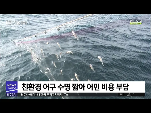 ◀ANC▶ 해양 쓰레기를 줄이기 위한 친환경 어구 사업이 지지부진하다는 소식 얼마전 전해드렸습니다. 친환경 어구가 일반 어구보다 수명이 짧고 가격이 비싸서 어민들이 외면하고 있는 게 가장 큰 원인입니다. 조희원 기자입니다. ◀END▶ ◀VCR▶ 어민들이 친환경 어구 사용을 꺼리는 또 다른 원인은 비싼 가격입니다....