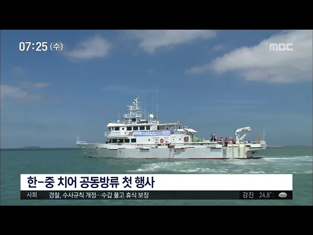 ◀ANC▶ 한때 조기 황금어장이었던 영광 칠산 앞바다에서 한국과 중국 정부가 공동으로 조기 치어를 방류했습니다. 갈수록 줄고 있는 수산자원을 함께 길러 서해 어장을 함께 가꿔보자는 첫 시도입니다. 장용기 기자가 보도합니다. ◀END▶ 어른 손가락 크기의 참조기와 부세 어린 새끼들이 영광 칠산바다에 쏟아집니다. ...