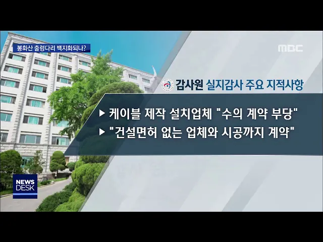 ◀ANC▶ 자치단체들이 마치 유행처럼 출렁다리를 놓고 있습니다. 관광 자원을 만들기 위한 거라는데... 경쟁적으로 설치하다보니 문제도 드러나고 있습니다. 박광수 기자가 취재했습니다. ◀END▶ "순천 봉화산 골을 잇는 국내 최장 184m짜리 출렁다리를 만들겠다." 논란속 25억 짜리 건설 사업에 감사원이 전격 실지감사...