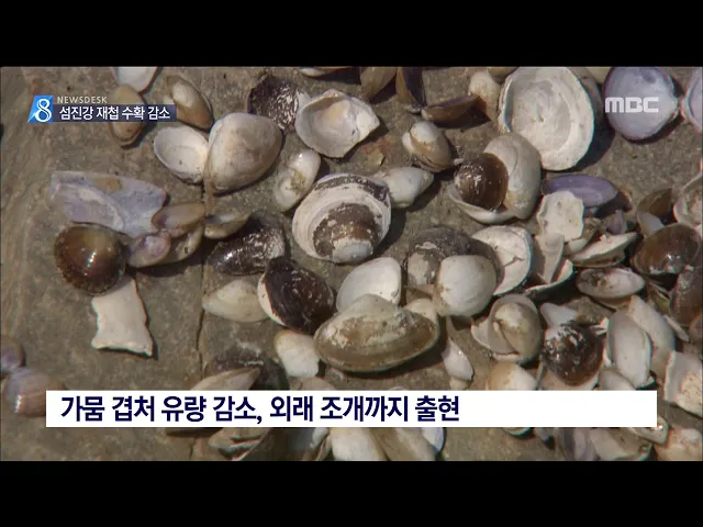 ◀ANC▶ 섬진강의 대표 특산물인 재첩 수확량이 해마다 줄고 있습니다. 섬진강 유량이 큰 폭으로 줄기 때문인데 어민들은 수확 자체를 포기해야할 형편입니다. 조희원 기자입니다. ◀END▶ 바다와 강이 만나는 섬진강 중하류 지역의 특산물인 재첩. 본격적인 채집철에 접어들었지만 이 곳 어민들은 울상입니다. 벌써 몇 ...