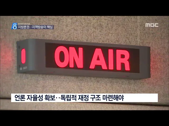 ◀ANC▶ 문재인 정부 들어 지방분권형 개헌이 본격 추진되면서 지역언론, 특히 지역방송의 위상과 역할에도 큰 변화가 요구되고 있습니다. 지역방송이 지역성을 제대로 구현할 수 있는 정책과 제도는 무엇인지 논의하는 자리에 조명아 기자가 다녀왔습니다. ◀END▶ ◀VCR▶ 문재인 정부의 지방분권형 헌법 개정에 맞춘 ...