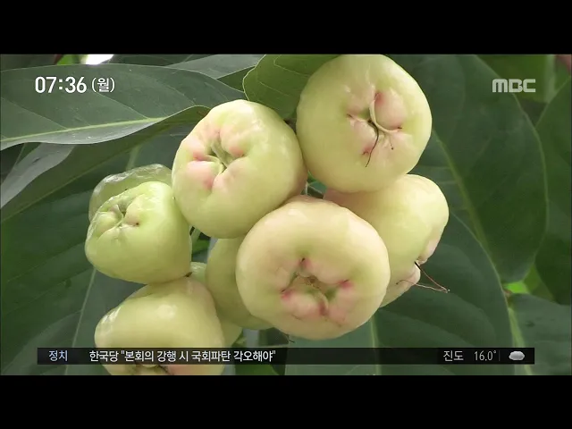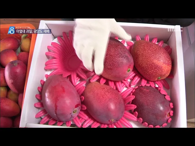 ◀ANC▶ 기후변화로 아열대 작물 재배가 잇따르고 있습니다. 여수, 고흥에 이어 광양에서도 아열대 과일 재배가 본격화하고 있습니다. 박민주 기자입니다. ◀END▶ 광양시 봉강면의 한 시설하우스, 천 6백 제곱미터의 농장에 탐스런 애플망고가 나무마다 열려 있습니다. 동남아시아가 원산지인 애플망고 출하는 시행착오...