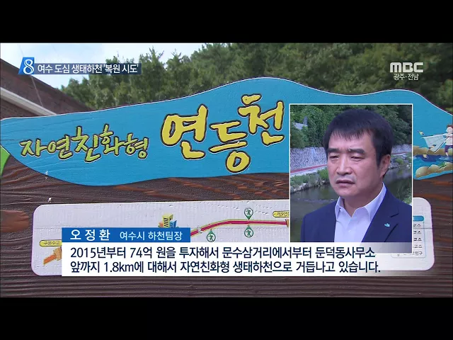 ◀ANC▶ 악취가 심했던 여수 연등천이 자연친화형 생태하천으로 복원되고 있습니다. 오는 2020년까지 74억 원이 투입되는데 자연적인 유량 확보가 관건입니다. 박민주기자가 취재했습니다. ◀END▶ 여수 원도심을 관통하는 연등천의 미평동 구간입니다. 수질이 악화됐던 하천이 자연친화형 하천으로 변하고 있습니다. 징...