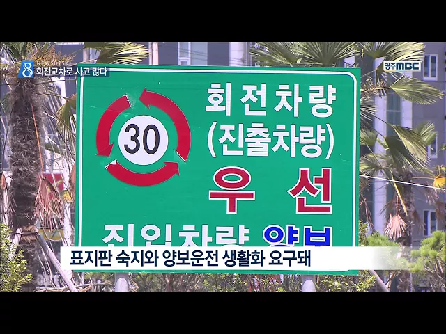 ◀ANC▶ 요즘 대기시간을 줄여 흐름을 원활하게 하는 회전교차로가 늘고 있습니다. 하지만 자칫 사고가 발생하면 연쇄 교통사고는 물론 교통정체가 심각해질 수 있어 운전자들의 양보가 무엇보다 중요합니다. 김종수 기자입니다. ◀VCR▶ 여수시내 한 회전교차로. 차량들이 흐름에 맞게 교차로로 진입하지만 아찔한 순간...
