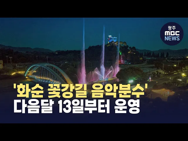 화순군이 '화순읍 꽃강길 음악분수 공연'을다음달 13일부터 운영합니다.공연은 평일과 일요일·공휴일엔 한 번, 토요일엔 두번 열리며 각종 축제나 행사 기간에는 요일과 상관 없이 특별 공연을 선보입니다.또 오는 4월 17일부터 26일까지 예정된 '화순 봄꽃 축제'와 연계합니다.