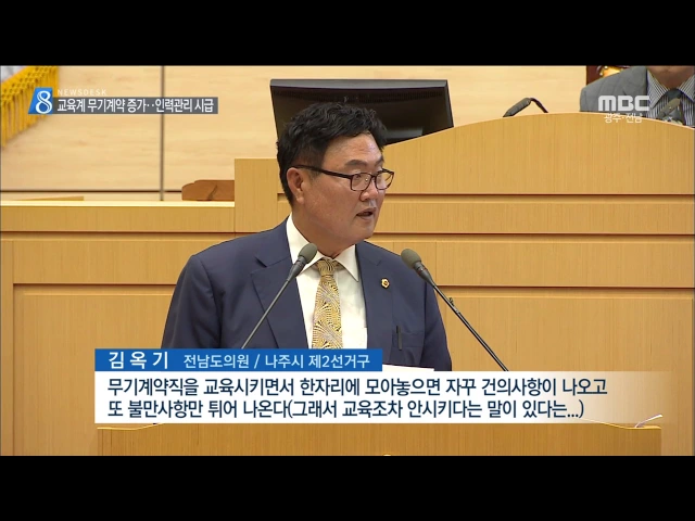 ◀ANC▶ 공공부문 비정규직의 정규직화가 추진되면서 전남도와 교육청의 무기계약직이 급증하고 있습니다. 정원외로 관리되고, 정규직과 비정규직의 경계가 모호한 무기계약직 관리가 시급합니다. 신광하 기자가 보도합니다. ◀VCR▶ 전남도와 22개 시군에 근무하고 있는 무기계약직은 5천20명입니다. 올해만 전남도 본청...