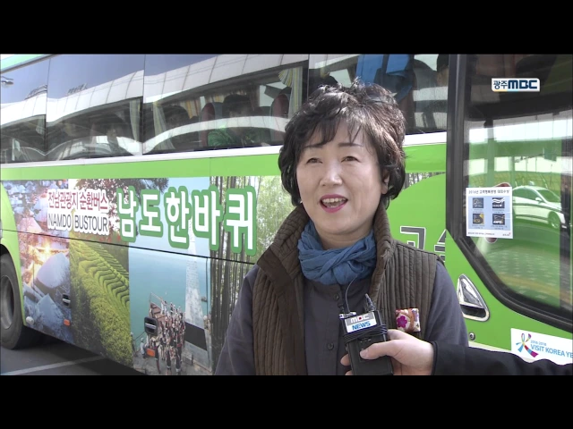 오늘의 검색창 [남도한바퀴] --- VCR (현장 취재 화면) ----------------- 버스 승차.. 출발 --- 스튜디오 ----------------------------- 지난 주말 운행했던 남도투어 모습인데요 출발하는 분들과 저도 함께 했습니다. 남도한바퀴는 광주 유스퀘어에서 버스를 타고 전남의 주요 관광지를 다녀오는 버스 투어입니다. 월요...