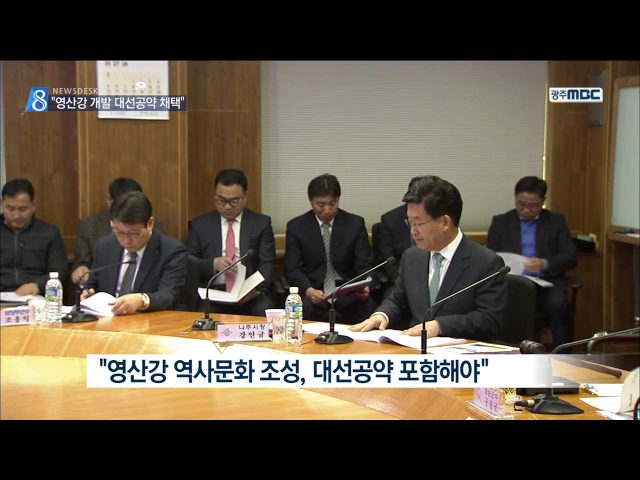 (앵커) 사정이 이렇다면 지자체라도 적극 나서 구체적인 대선 공약을 발굴해야겠죠.. 영산강 유역의 자치단체들이 발빠르게 움직이고 있습니다. 이계상 기자입니다. (기자) 나주와 목포, 화순 담양 등 전남지역 8개 시군이 한 자리에 모였습니다. 지역의 대표들은 숙원사업인 '영산강 역사문화 조성 사업'을 대선공약의 첫...