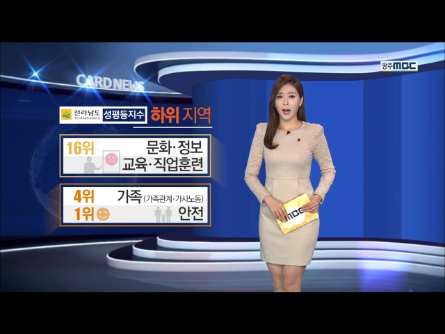 광주와 전남 지역, 여성들의 사회적 지위는 어떨까요? 여성가족부가 여성의 경제활동과 의사결정 등 8개 분야를 평가한 '성평등지수'를 발표했습니다. 전남의 성평등지수는 하위권을 차지했습니다. 특히, 여성의 고등교육기관 진학률과 직업교육훈련 경험률이 전국에서 가장 낮았습니다. 또한, 농어촌 지역이다보니, 여가시...
