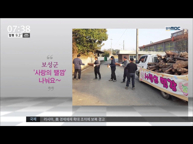 대한민국 카투사연합회 광주전라지회가 선천성 자가면역성 간염 투병 중인 학생(김민석 군)에게 성금을 전달했습니다. (21) 국립 농산물품질관리원 전남지원과 대한민국 스타팜 광주전남 협의회가 어려운 이웃에게 연탄을 선물했습니다. (20) 보성군이 숲 가꾸기 현장에서 생긴 부산물을 모아 어려운 이웃들에게 땔감으로 ...