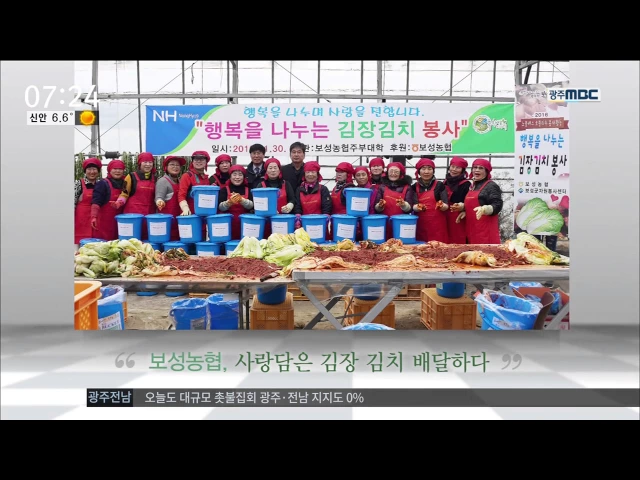 한국전력이 연탄은행을 통해 어려운 이웃들에게 연탄 2백만 장을 기부했습니다. (2) 아름다운 청소년들 영광 지부가 조손가정과 한 부모 가정을 위해 난방비를 지원했습니다. (2) 보성농협과 고향생각 주부모임이 직접 김장김치를 담아 이웃들에게 선물했습니다. (30) 동신대학교가 재학생과 지역 청년들을 위한 취업페스티...