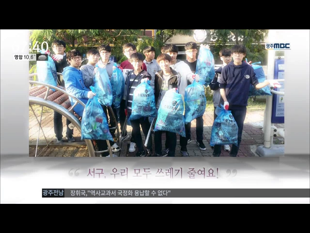 광주 서구 금호1동이 쓰레기 문제의 심각성을 느낄 수 있도록 체험형 프로그램을 운영했습니다. (18) 동신대학교가 독서캠프를 열고, 소설가 한승원 씨를 초청해 '시인의 마음으로 살아가기'를 주제로 특강을 진행했습니다. (18-19) 호남대학교 중국항저우세종학당이 한국과 중국의 문화교류 확산을 위해 '한*중 친선가요제...
