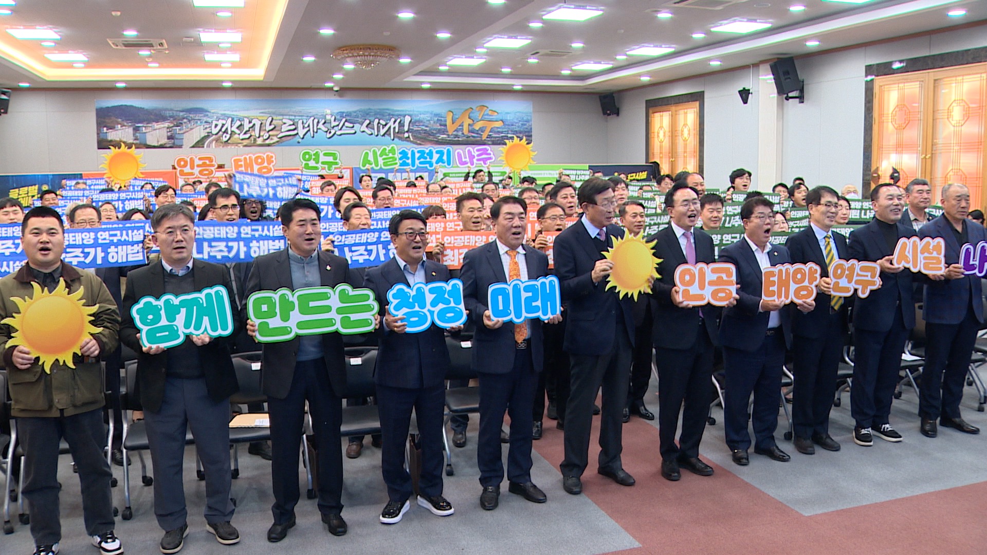 (앵커)지역의 미래 먹거리를 책임질 인공태양 연구시설 구축 사업 공모가 어제(13) 마감됐습니다.나주를 포함해 모두 7개 지역이치열한 유치 경쟁에 나섰는데요.정부는 이번달 말쯤 인공태양 연구시설 최종후보지를 발표합니다.보도에 김영창 기자입니다.(기자)1조 2천 억원대의 인공태양 연구시설 유치 공모에나주를 포함...
