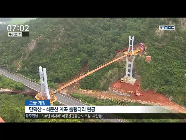 ◀ANC▶ 강진 석문계곡은 호남의 소금강으로 불릴 정도로 빼어난 산세를 자랑하고 있습니다. 이 곳에 국내 최장의 산악형 현수교가 만들어졌습니다. 문연철 기자가 다녀왔습니다. ◀END▶ ◀VCR▶ 오랜 세월 자연이 빚어낸 기암괴석과 시원한 물줄기. 마치 금강산을 축소해 놓은 것 같다고 해서 소금강이라고 불리는 석...