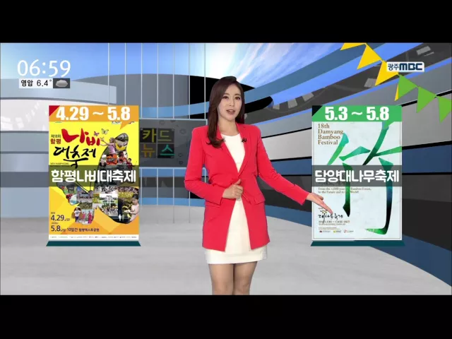 가정의 달 5월이 코앞으로 다가왔습니다. 5월을 맞아 가족과 여행계획 세우는 분들 계실 텐데요. 전남에선 '함평나비대축제'를 시작으로, 5월 3일에는 더욱 다양해진 체험 프로그램을 준비한 담양 대나무 축제가 열리고요. 5월 4일에는 차와 문화를 즐길 수 있는 보성 다향 대축제가 준비 중입니다. 5월 6일에는 동에 번쩍,...