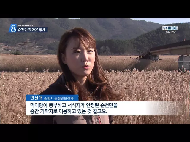 ◀ANC▶ 순천만에서 천연기념물 199호 황새가 잇따라 목격되고 있습니다. 세계적으로 2천 5백여 마리 밖에 없어 국제적으로 보호를 받고 있는 희귀 조류인데 지속적인 모니터링이 필요해 보입니다. 박민주 기자입니다. ◀VCR▶ 국내 최대 흑두루미 월동지로 알려진 순천만. 올 겨울에도 천여 마리의 흑두루미가 순천만을 ...