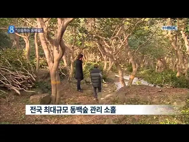 ◀ANC▶ 국내 최대 규모의 동백숲이 망가지고 있습니다. 주변의 활엽수들이 군락지를 잠식하고 있는데 세계 문화유산 등재를 추진하겠다던 산림청은 관리에는 손을 놓고 있습니다. 문연철 기자가 취재했습니다. ◀VCR▶ 겨울 햇살을 품은 동백숲이 계곡을 따라 끝없이 펼쳐집니다. 면적만 50만 제곱미터, (S/U) 지난 2천5...