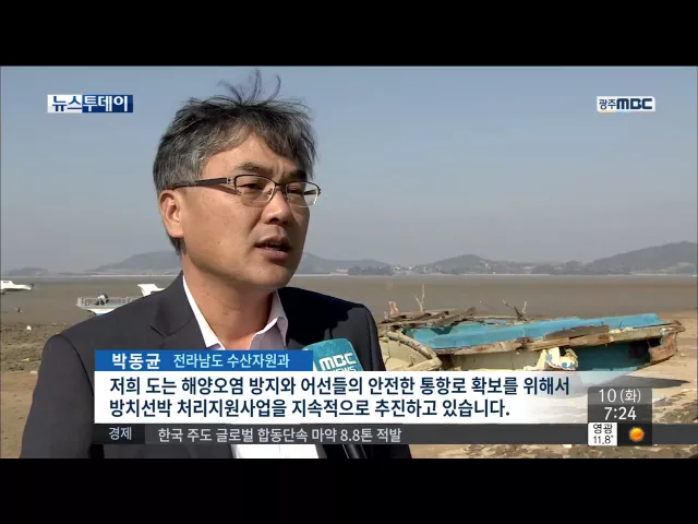 ◀ANC▶ 청청해역인 서남해에 방치선박들이 흉물로 많이 남아 있습니다. 지자체들이 방치선박 정리지원 사업에 나서고 있지만 아직 역부족입니다. 김양훈 기자가 취재했습니다. ◀END▶ 바다에 있어야할 어선이 뻘 위에 올라와 있습니다. 엔진도 없고 배 이름도 지워져 소유주가 누구인지 알 수가 없습니다. s/u 전라남도...