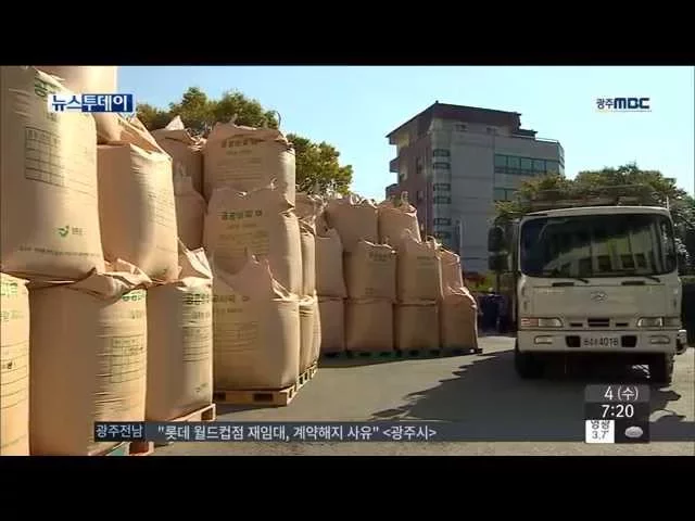 ◀ANC▶ 쌀값이 올해 유례없는 폭락세를 보이고 있습니다. 정부의 쌀값 안정대책을 촉구하는 쌀 야적 시위가 전국 곳곳에서 열렸습니다 문연철기자가 보도합니다. ◀END▶ ◀VCR▶ 성난 농심을 담은 포대들이 장흥군청 마당을 가득 메웠습니다. 전국 동시 다발적으로 돌입한 쌀 야적시위는 전남에서는 영암과 해남,담양 ...