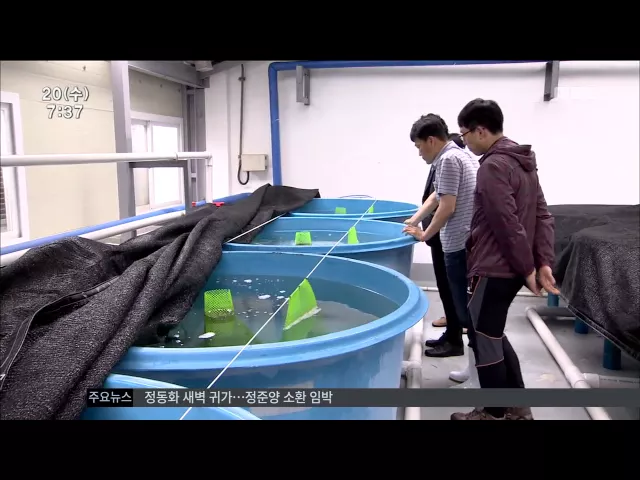 ◀ANC▶ 코를 톡 쏘는 게 제 맛인 흑산홍어가 자원 고갈로 귀하고 비싼 몸이 된 지 오랩니다. 새끼 홍어를 인공 생산하기 위한 연구가 시작돼 관심이 모아지고 있습니다. 문연철기자가 보도합니다. ◀END▶ ◀VCR▶ 큰 수조 안에 암 수 두 마리의 홍어가 움크리고 있습니다. 이들 홍어가 수정한 알들이 주머니처럼 생긴 ...