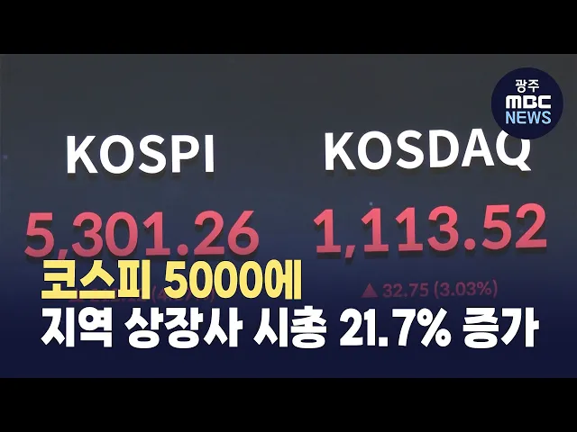 코스피의 급등으로 광주와 전남 지역 상장사들의 지난 달 시가총액이전달보다 21.7% 상승했습니다. 한국거래소 광주혁신성장센터에 따르면 광주·전남 상장법인 39개 사의 시총은 48조 7천5백억 여원으로 전달보다 8조 7천억 여원이 증가했습니다. 이는 유가증권 시장에서 한국전력의 시총이 7조원이상 증가한 것이 주요 원...