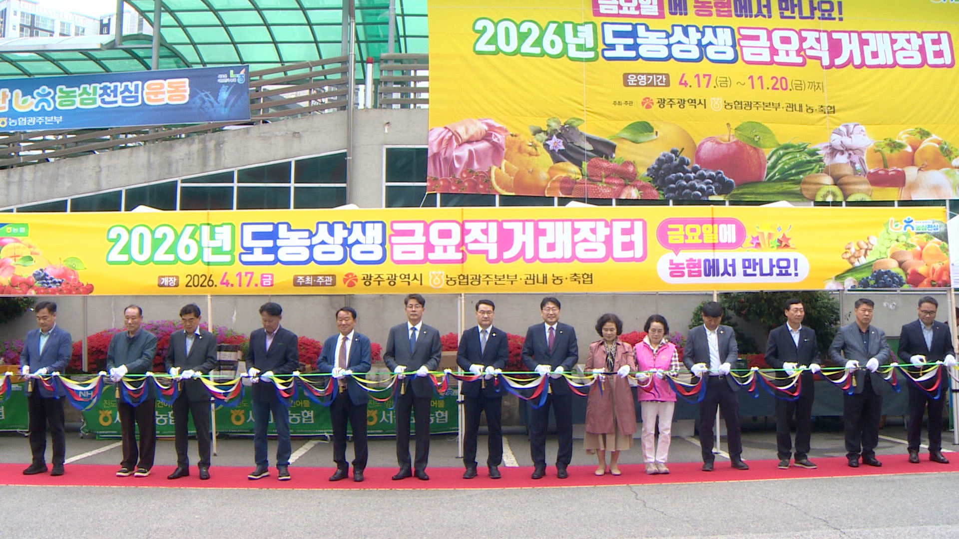 지역농산물과 소비자를 직접 연결하는 직거래 장터가 마련됐습니다.농협광주본부는 오늘(17일) 지역 농민들과 소비자 등이 참석한 가운데금요직거래장터 개장식을 열고 본격적인 운영에 들어갔습니다.오는 11월 중순까지 매주 금요일 열리는직거래 장터에서는 지역농산물이 시중가보다 최대 30%까지 저렴하게 판매되고, 계...