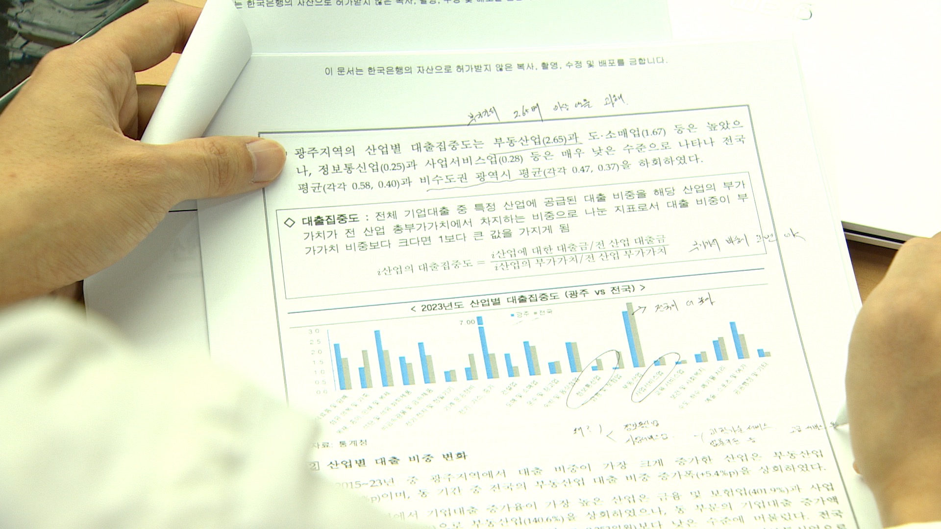 광주 지역의 경우성장성이 높은 산업에 대출을 늘리고정책 지원을 강화해야 한다는 연구 결과가 나왔습니다.한국은행 광주전남본부는지난 2023년 광주 기업대출 총액이8년 전보다 약 70% 증가했고, 그 증가액 중 30%가량이 부동산업에 집중됐다며,이 같은 연구 결과를 오늘(15일) 발표했습니다.그러면서, 정보통신업 등 성...