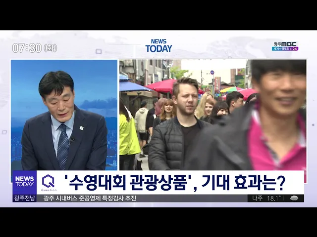 (앵커) 세계수영선수권대회 기간에 광주를 방문할 것으로 예상되는 인원은 선수와 임원들만, 7천여명입니다. 관광 상품을 잘 개발한다면, 지역 경제에 큰 도움이 될텐데요. 광주시가 최근 '머물면서 관광할 수 있는' 상품 개발에 나섰습니다. 광주관광컨벤션뷰로 이용헌 대표이사와 이야기 나눠보겠습니다. 안녕하십니까? (...