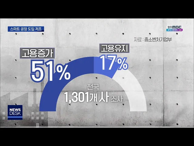 ◀ANC▶ 최근 산업계의 화두는 단연 스마트공장입니다. IT 기술을 생산 설비와 연결시켜 실시간으로 생산 공정을 조정할 수 있는 시스템을 말하는데요. 광주와 전남 지역은 아직까지 도입이 저조하다고 합니다. 이재원 기잡니다. ◀END▶ ◀VCR▶ 자동차 내.외장재를 생산하는 한 업쳅니다. 대형 로봇들이 쉴새없이 부품...
