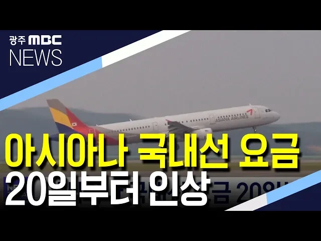 아시아나항공이 오는 20일부터 주요 관광 노선에 '선호 시간'을 도입하는 방식으로 평균 운임을 3.1% 올리기로 했습니다. 이에 따라 현재 주중 요금이 5만 9천원인 광주-제주 노선은 선호 시간대에 6만 2천원으로 인상되고, 광주-서울 노선의 성수기 주말 요금도 3.9% 인상됩니다. 또, 비상구 좌석도 선호좌석으로 적용해 ...