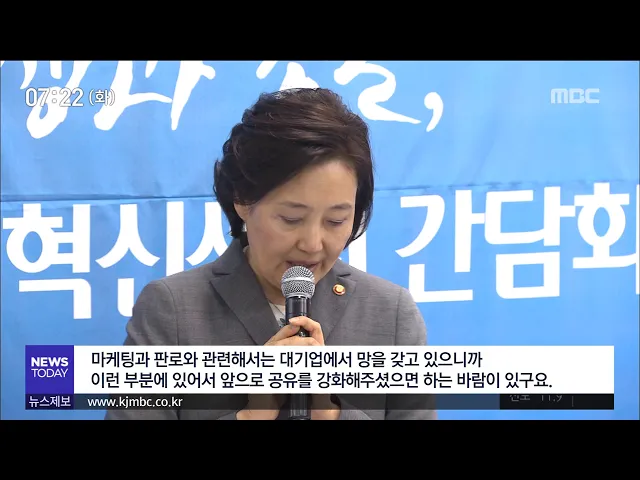 박영선 중소벤처기업부 장관이 광주를 찾아 대기업과 중소기업, 전통시장이 상생 발전하는 방안을 찾겠다고 밝혔습니다. (인터뷰)박영선 "중소기업들이 많은 애로를 겪고 있는 것 중에 하나가 마케팅과 판로입니다. 마케팅과 판로와 관련해서는 대기업에서 망을 갖고 있으니까 이런 부분에 있어서 앞으로 공유를 강화해주셨...