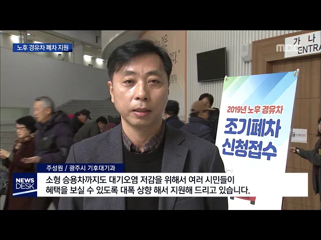 (앵커) 미세먼지의 주범 가운데 하나로 꼽히는 오래된 경유차를 폐차하면 보조금을 지원해주는 사업이 올해도 시행됩니다. 지원 규모가 커진 데다 새 차로 바꾸면 할인 혜택도 누릴 수 있어서 신청 접수를 시작하자마자 지원자들이 몰리고 있습니다. 이계상 기자가 취재했습니다. (기자) 광주시청 대회의실에 민원인들이 자...