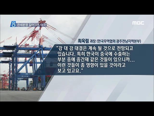 ◀ANC▶ 미.중 무역분쟁이 점화되면서 관련 업계가 긴장하고 있습니다. 당장 피해는 없겠지만 관세분쟁이 장기화되면 전남 동부지역에 밀집된 철강석유화학 산업에 타격이 우려됩니다. 박민주기자입니다. ◀END▶ 올초 철강업계는 미국발 관세 부과에 긴장했습니다. 관세 대신 쿼터제로 한 고비를 넘겼지만 이달초 미.중 ...