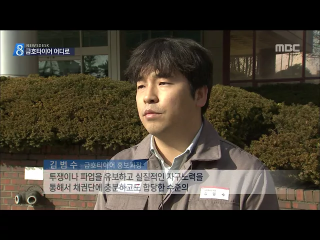 이처럼 금호타이어 채권단이 자구계획안을 요구한 것과 관련해 금호타이어 사측은 오늘 파업철회를 노조에 요구했습니다. 회사측은 보도자료를 내고 "채권단이 노사 양측에 합당한 수준의 자구노력을 요구하고 있는 상황에서 채권단의 양보로 어렵게 주어진 시간을 노사갈등으로 허비한다면 지역경제의 미래와 구성원들의 ...