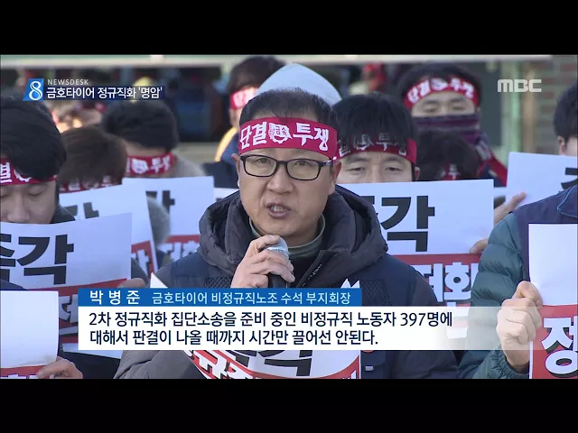 금호타이어의 사내 협력업체 근로자들이 대법원의 판결에 따라 정규직으로 전환됐습니다. 해당 근로자들에게는 다행한 일이지만 경영난에 처해 있는 금호타이어는 구조조정의 칼날을 피해갈 수 있을 지 걱정하고 있습니다. 박수인 기자 ◀VCR▶ 금호타이어에서 사내 협력업체 소속으로 일하던 132명이 7년의 소송 끝에 정...