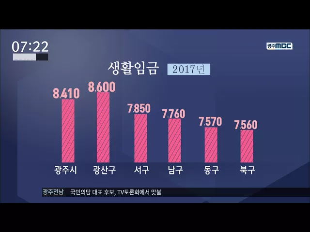 광주시의 내년 생활 임금이 만원에 육박할 것으로 보입니다. 광주시가 한국노동사회연구소에 의뢰해 생활 임금을 산정한 결과 시간당 8천5백원 선에서 9천5백원 선이 적정하다는 결과가 나왔습니다. 광주시는 용역 결과를 토대로 이달 말 생활임금위원회에서 최종안을 확정할 계획인데 올해 생활임금이 8천4백10 원인 점을 ...